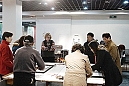 Besprechung des Masterplans mit dem Vorsitzenden der Kulturvereinigung Nanjing Zhang Yubao, der Kalligrafin Yang Kangle, dem Leiter des Nanjing Art Museums und unserem Begleiter Herrn Chen. Aufbau der Ausstellung - der Raum war riesig! Wir hatten viel Arbeit und die Malerinnen erhielten professionelle Unterstützung beim Rahmen und Hängen.